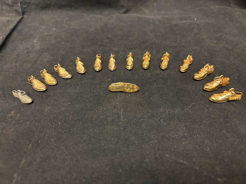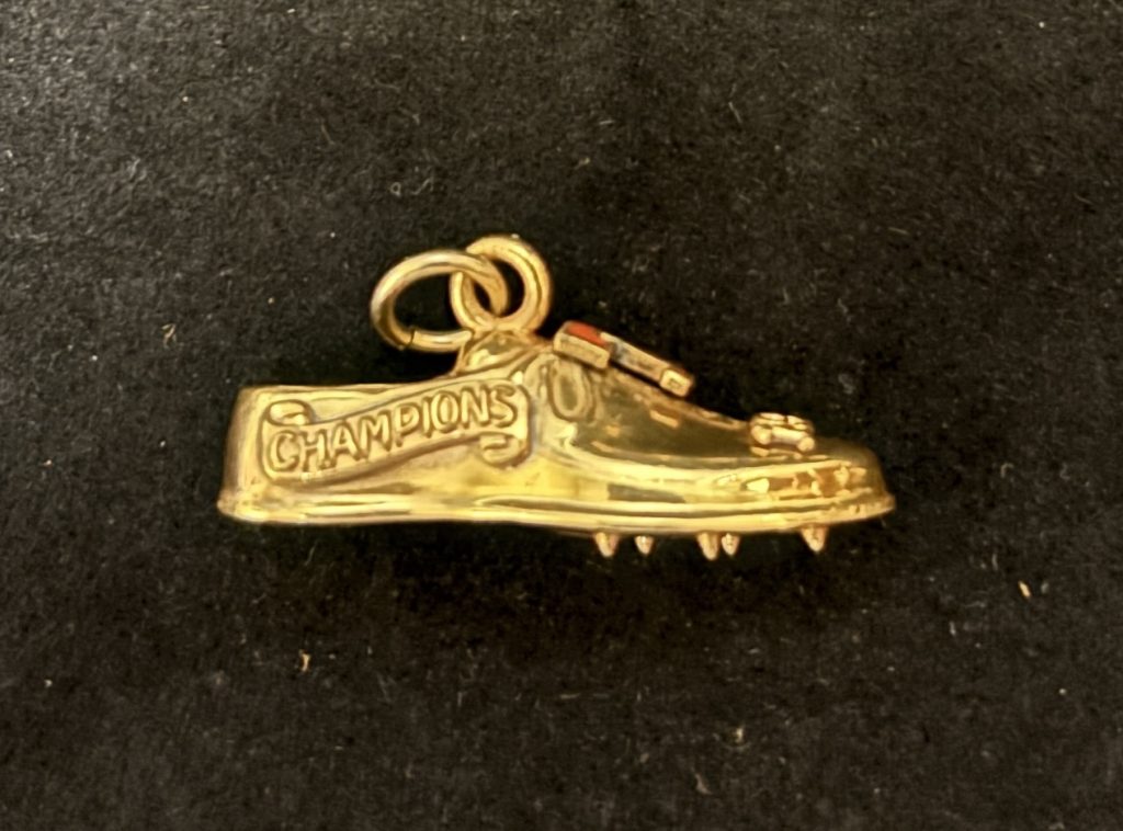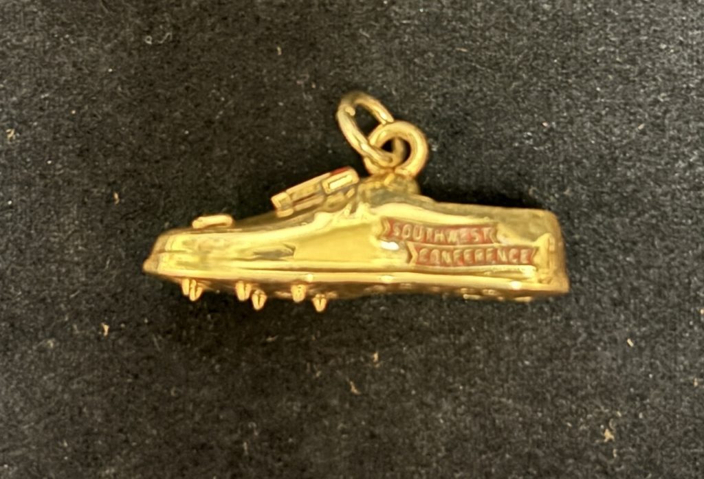 Clyde Littlefield's charm bracelet, adorned with Southwest Conference Championship charms, including footballs and track spikes.